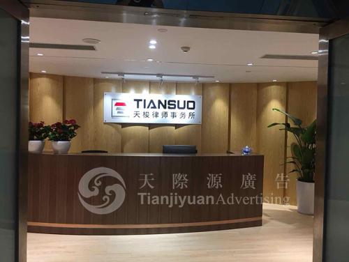工程描述:天際源廣告有幸能夠承制天梭律師事務(wù)所的前臺(tái)LOGO墻和標(biāo)識(shí)標(biāo)牌,此合作已成為我們的又一成功案例!